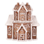 Domeček perníkový - polyresin, LED osvětl., hnědý s bílým zdobením