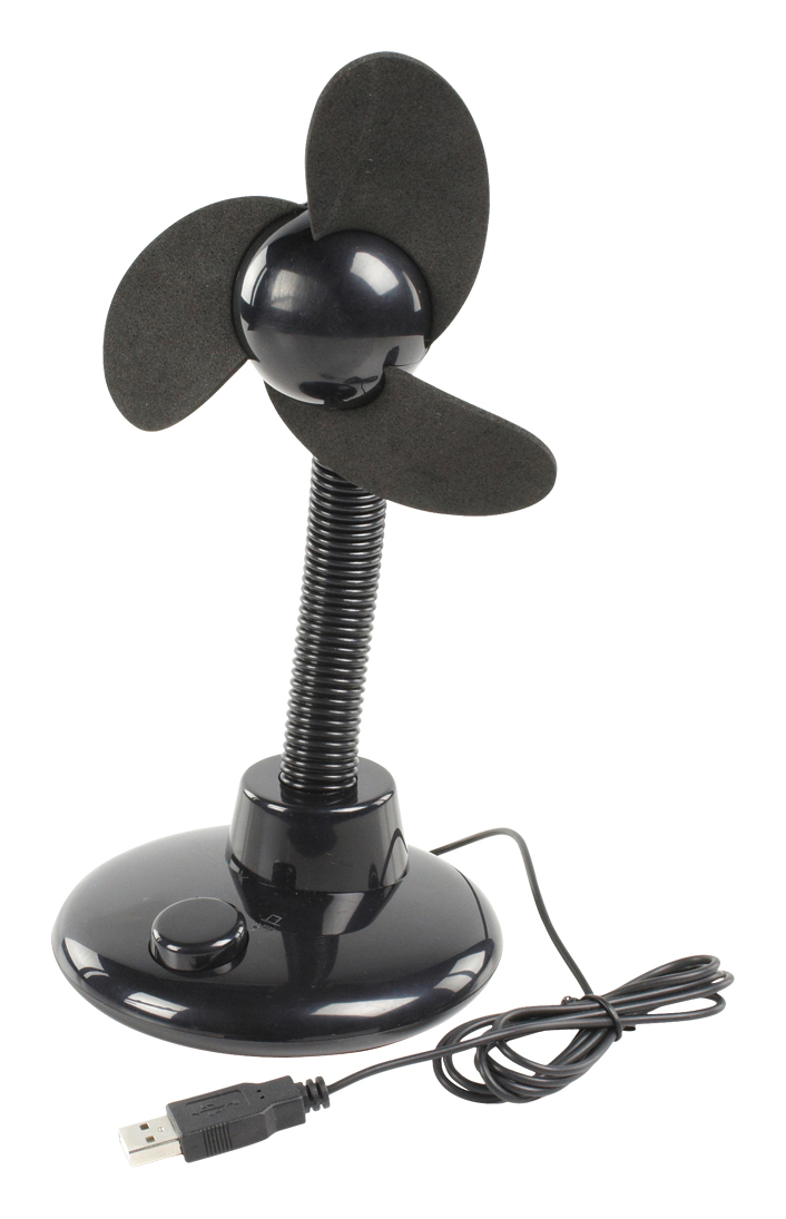 Stolní USB ventilátor s možností napájení také 4 AA bateriemi (nejsou součástí). Lopatky jsou z měkkého pěnového materiálu, flexibilní krk, vypínač.• 120 mm měkké bezpečné lopatky z pěnového materiálu• USB / bateriové napájení• Vypínač zap/vyp.• Flexibilní krk• USB kabel 1.5 m číst celé