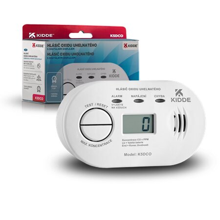 1x detektor oxidu uhelnatého s LCD displejem - model Kidde K5DCO
