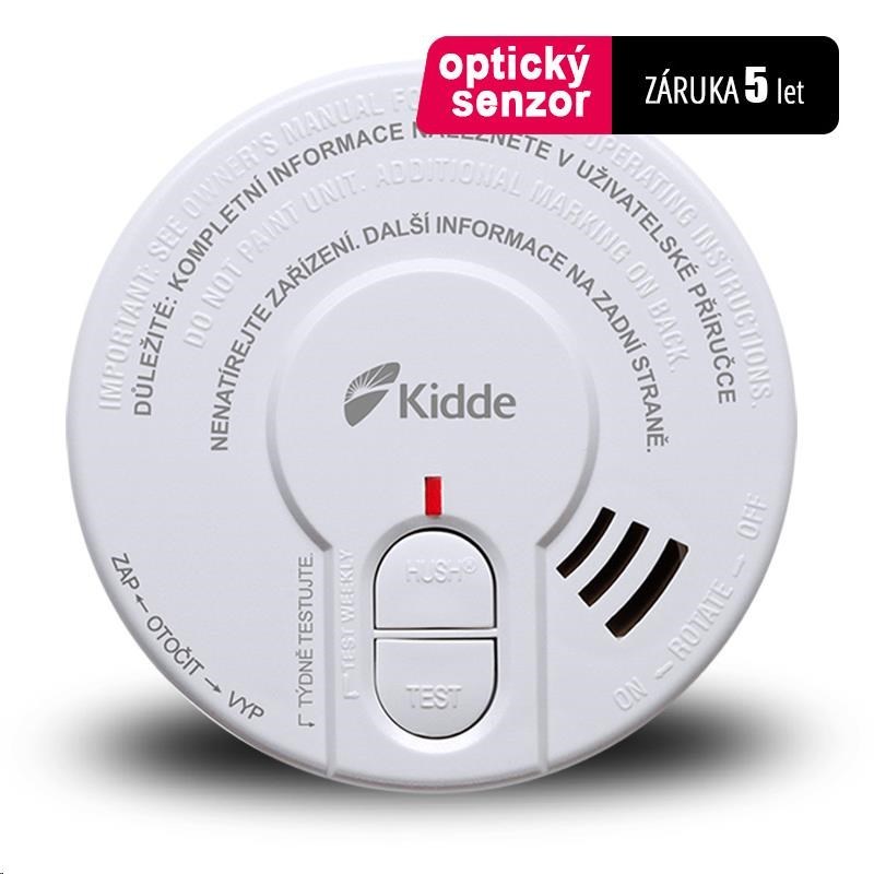 Hlásič požáru je vybaven testovacím tlačítkem TEST pro kontrolu správného fungování zařízení a HUSH pro přechodné umlčení požárního hlásiče pro případ planého alarmu. Stisknutí tlačítka způsobí okamžitou deaktivaci alarmu, na dobu asi 10minut, snížení citlivosti obvodů a vypnutí akustické signalizace hlásiče. Tlačítko HUSH používejte pouze tehdy, pakliže znáte příčinu aktivace hlásiče (např. při vaření nebo smažení). Po cca 10 minutách od deaktivace hlásiče se tento zcela automaticky resetuje do původního nastavení pro monitorování nebezpečí požáru. Pokud v místnosti zůstane vysoká koncentrace kouře, můžete stisknout tlačítko HUSH opakovaně a to až do okamžiku kdy je místnost řádně odvětrána. Tento model je vybaven nejmodernějším fotoelektrickým senzorem Kidde.
