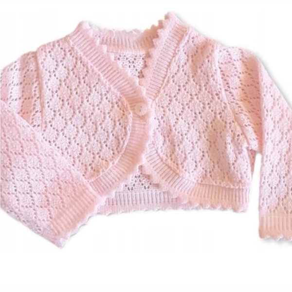 Dívčí pletené, ažurkové bolerko, dl. rukáv - sv. růžové, vel. 80; 80 (9-12m)