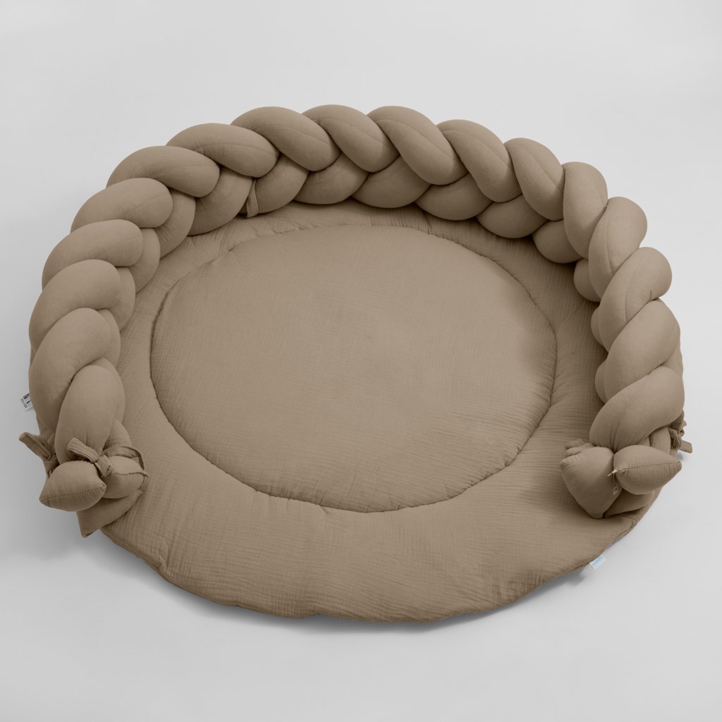 Mušelínová dětská hrací deka New Baby je vynikající výrobek, který bude vašemu děťátku sloužit od prvních dnů života. V prvním období bude tvořit úžasnou podložku, kterou můžete rozprostřít na posteli nebo v postýlce, později ji můžete dát pod něj, když leze. Později, když dítě začne sedět, bude v kombinaci s mušelínovým pleteným copem New Baby příjemným místem na hraní. Cop se k hrací dece jednoduše přiváže pomocí provázků, které jsou součástí copu.