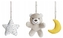 Věk 6 M + přenosná noční lampa s projektorem k umístění na noční stolek. Látkové přívěsky jsou perfektní jako první hračky. Časový spínač 15 nebo 30 minut. melodie a 2 úrovně hlasitosti. 3 přívěsky z měkkého materiálu. Hračky jsou odnímatelné. Kompatibilní s kolébkami a postelemi o šířce 55-65 cm. Pohodlný a bezpečný montážní systém.