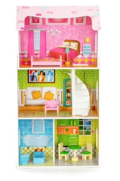 Celý domeček je vyroben z vysoce kvalitního dřeva, které neobsahuje žádné ostré a nebezpečné hrany. Celý dům má 3 nezávislé úrovně s celkem 5 pokoji - vše dokonale napodobuje skutečný obytný dům.