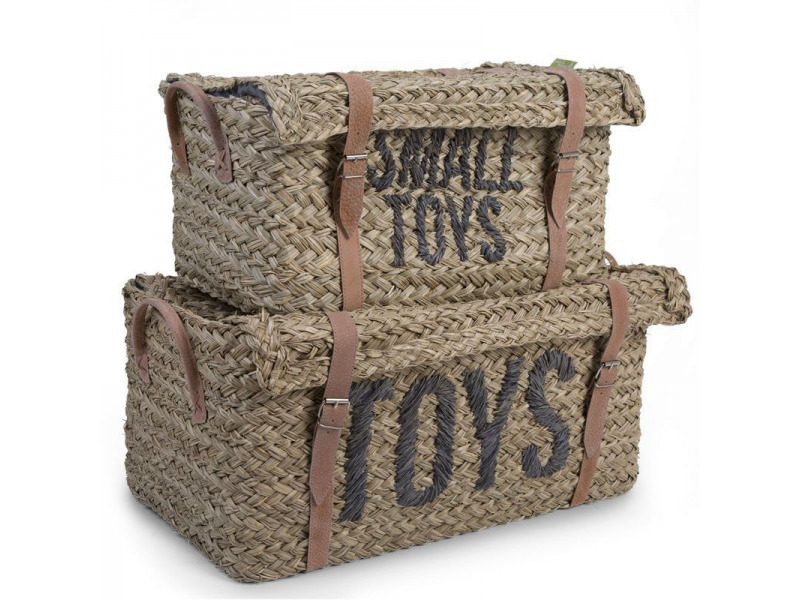 Krásné slaměné koše s koženými popruhy a držadly jsou ideální na ukládání hraček a zároveň tvoří originální dekoraci dětského pokoje. Uvnitř koše je podšívka ze 100% polyesteru.