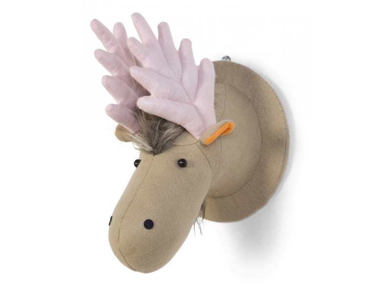 Originální dekorace v podobě hlavy losa s růžovým parožím je určena k zavěšení na stěnu. Rozměry: 22 x 25 x 38 cm číst celé