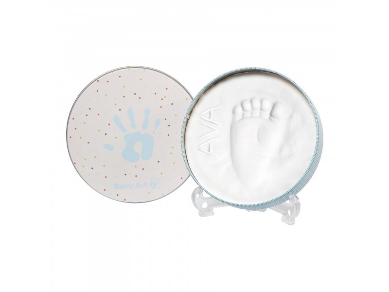 Kulatý rámeček s víkem a stojánkem Baby Art Magic Box nabízí prostor pro otisk ručičky nebo nožičky Vašeho miminka. Vyrobte si krásnou dekoraci, která vám zároveň pomůže uchovat vzpomínky na krásné období po narození vašeho dítěte.