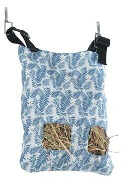 Usnadněte si krmení a zajistěte čerstvost sena díky této praktické tašce se vzorem palmových listů, která snadno zapadne do klece vašeho mazlíčka.