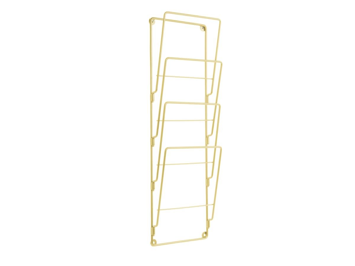 Nástěnný stojan na noviny a časopisy z lakovaného kovu. Novinový stojan se dá jednoduše nainstalovat na stěnu navrtáním otvorů do zdi a přišroubováním.