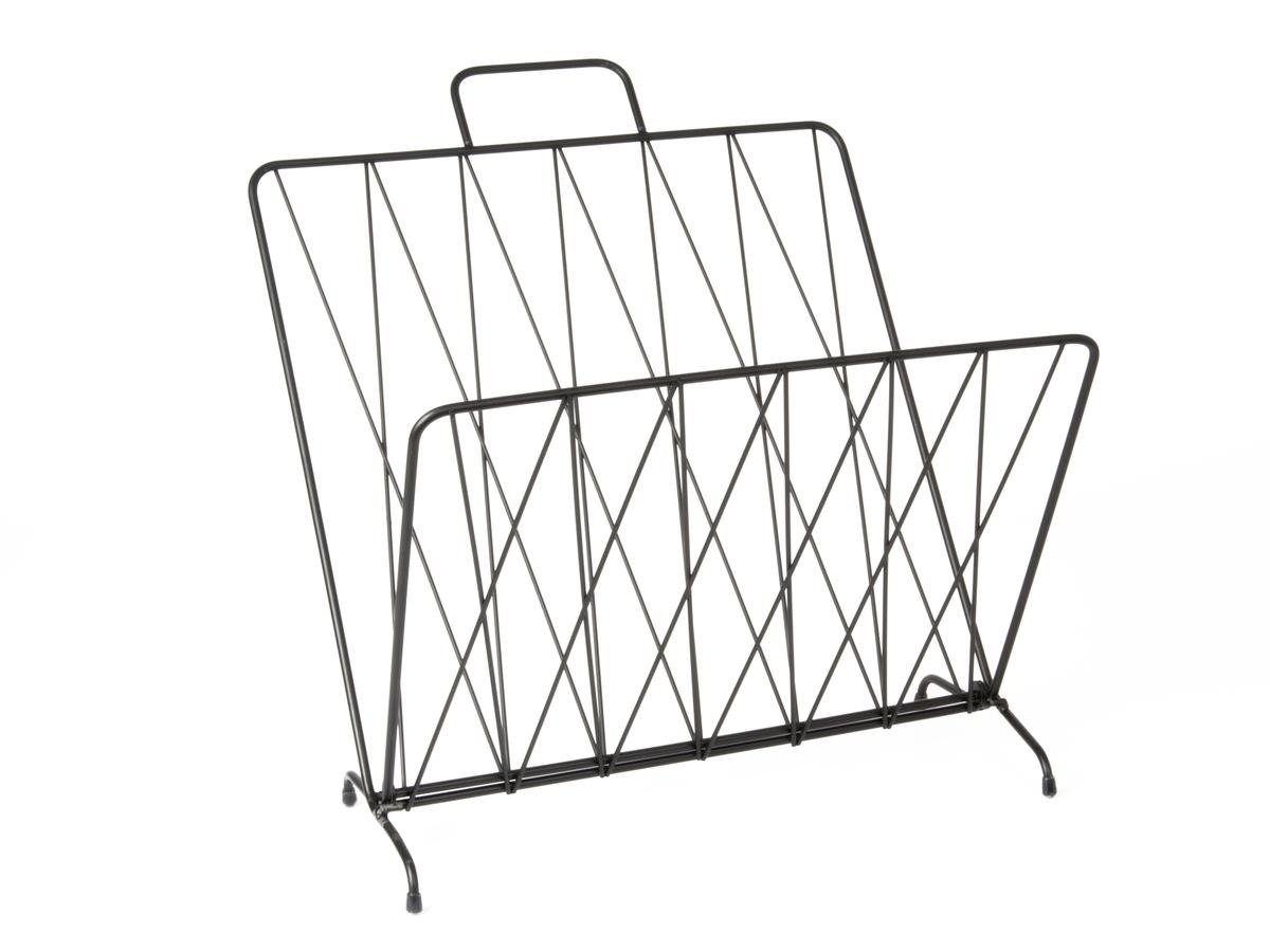 Skládací stojan na noviny a časopisy v elegantní černé barvě.