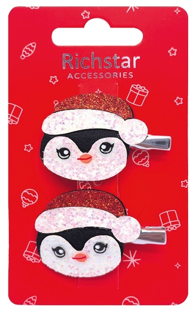 Sponky do vlasů tučňáci 4,5 × 3,5 × 0,5 cm, 2 ks Roztomilé sponky s motivem tučňáků přinesou do účesu zimní náladu a hravý šmrnc. Veselý design a pečlivě zpracované detaily potěší každého milovníka zvířátek i zimních motivů. Využití: Ideální pro zimní měsíce, focení, školní akce, oslavy nebo jako milý dáreček. Skvělé také jako doplněk k vánočnímu outfitu. Vlastnosti: balení: 2 kusyrozměry: 4,5 × 3,5 × 0,5 cmuchycení: kovová sponkaSponky s tučňáky dodají každému účesu zábavný dotek a rozveselí i ten nejchladnější zimní den.