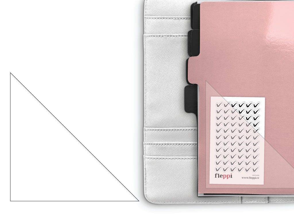 Chybí vám ve vašem diáři praktická kapsa na samolepky, lístečky, účtenky a další papírky? Od teď si ji můžete snadno a rychle vytvořit a umístit přesně tam, kam potřebujete. Připravili jsme pro vás tyto skvělé samolepicí růžky z měkkého čirého PVC. Celá zadní (nalepovací) strana je opatřena samolepicí vrstvou, takže budou držet pevně přilepené.