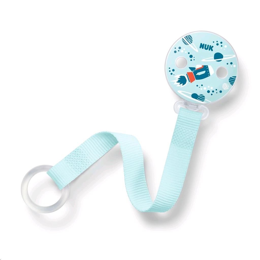 Veselá, barevná stužka na dudlík NUK s flexibilním kroužkem. Díky sponě dudlík nespadne na zem a nezašpiní se a neztratí se. Má snadné použití a je vyrobena tak, aby se dala připnout k dětskému oblečení. Určeno pro děti od prvních dnů života. Stužka je vhodná i na dudlíky bez kroužku díky natahovacímu silikonovému kroužku. Systém klipu je bez ostrých hran pro otevírání a zavírání jednou rukou.
