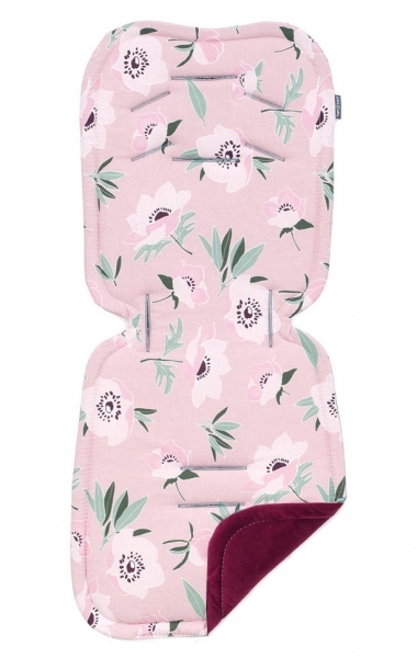 Vložka do kočárku prošívaný Velvet PREMIUM Květy v růžové, zelená