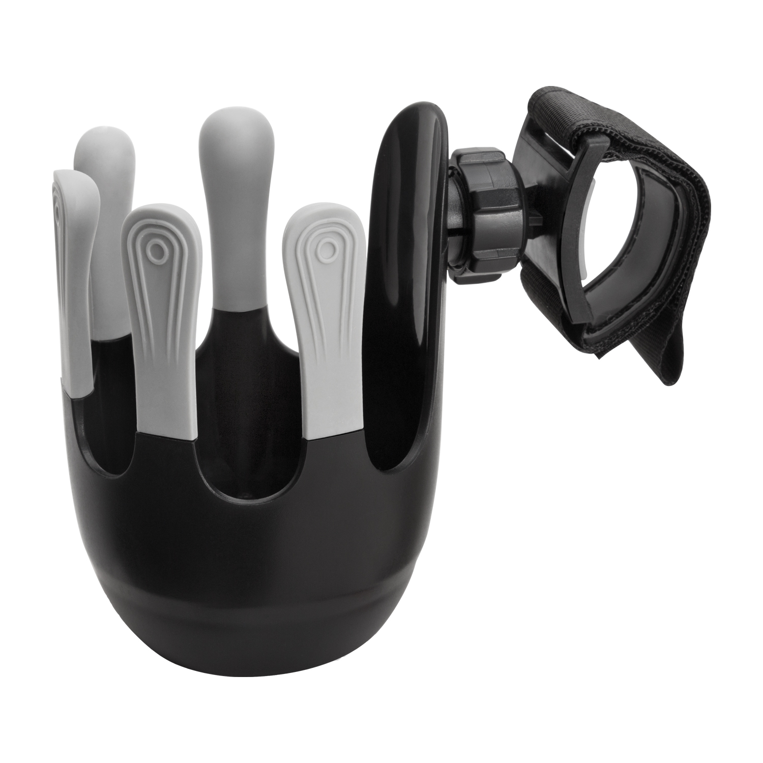 Držák je navržen tak, aby pojmul širokou škálu nápojů - od dětských lahví, přes kelímky s kávou, až po větší láhve s vodou o průměru až 8,5 cm. Díky pevnému, ale flexibilnímu pětiprstému systému zajišťuje vynikající stabilitu, která zabrání nechtěnému vylití obsahu i při jízdě nebo při přepravě kočárku v terénu.
