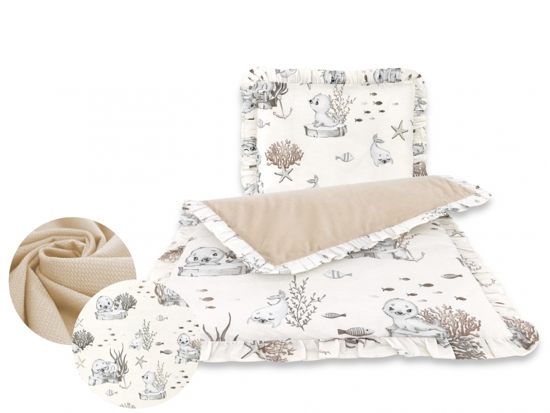 2-dílná sada s volánkem do kočárku bavlna + Velvet, Lachtánek - béžová