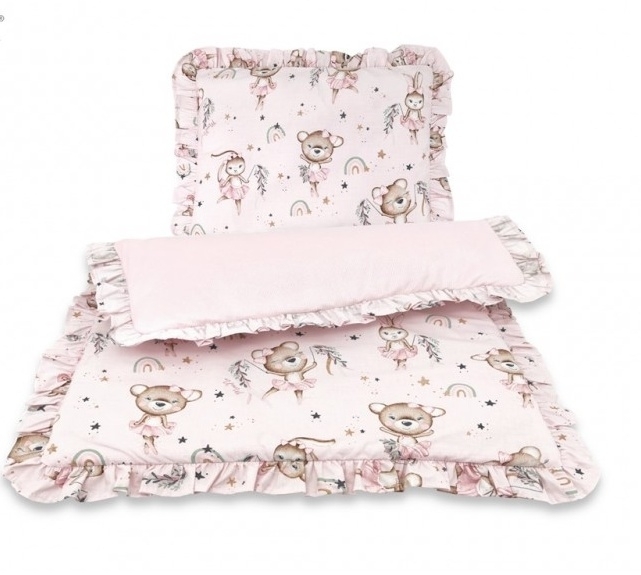 Sada do kočárku s volánkem, 2D, bavlna + Velvet, Little Balerina - růžová