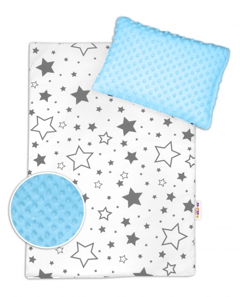 Baby Nellys 2-dílná sada do kočárku s minky - šedé hvězdy a hvězdičky/minky sv. modrá