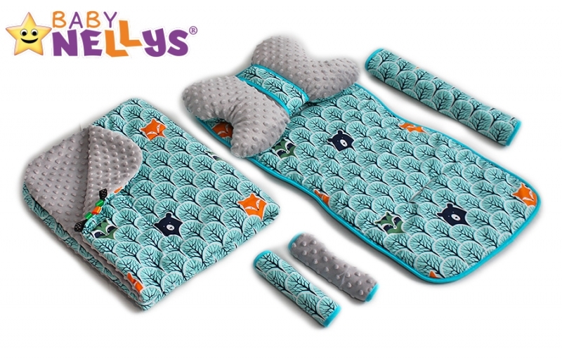 Mega sada do kočárku - podložka, polštářek, potah na popruhy a barieru, dečka, č. 6