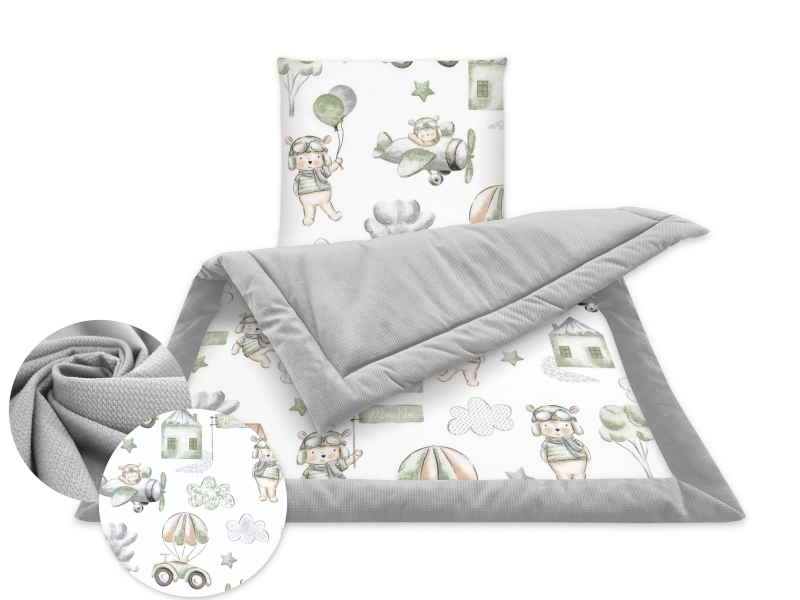 2-dílná sada do kočárku bavlna + Velvet, Piloti - olivová/šedá