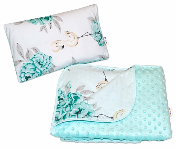 Baby Nellys 2-dílná sada do kočárku s minky - Plameňák - mátový