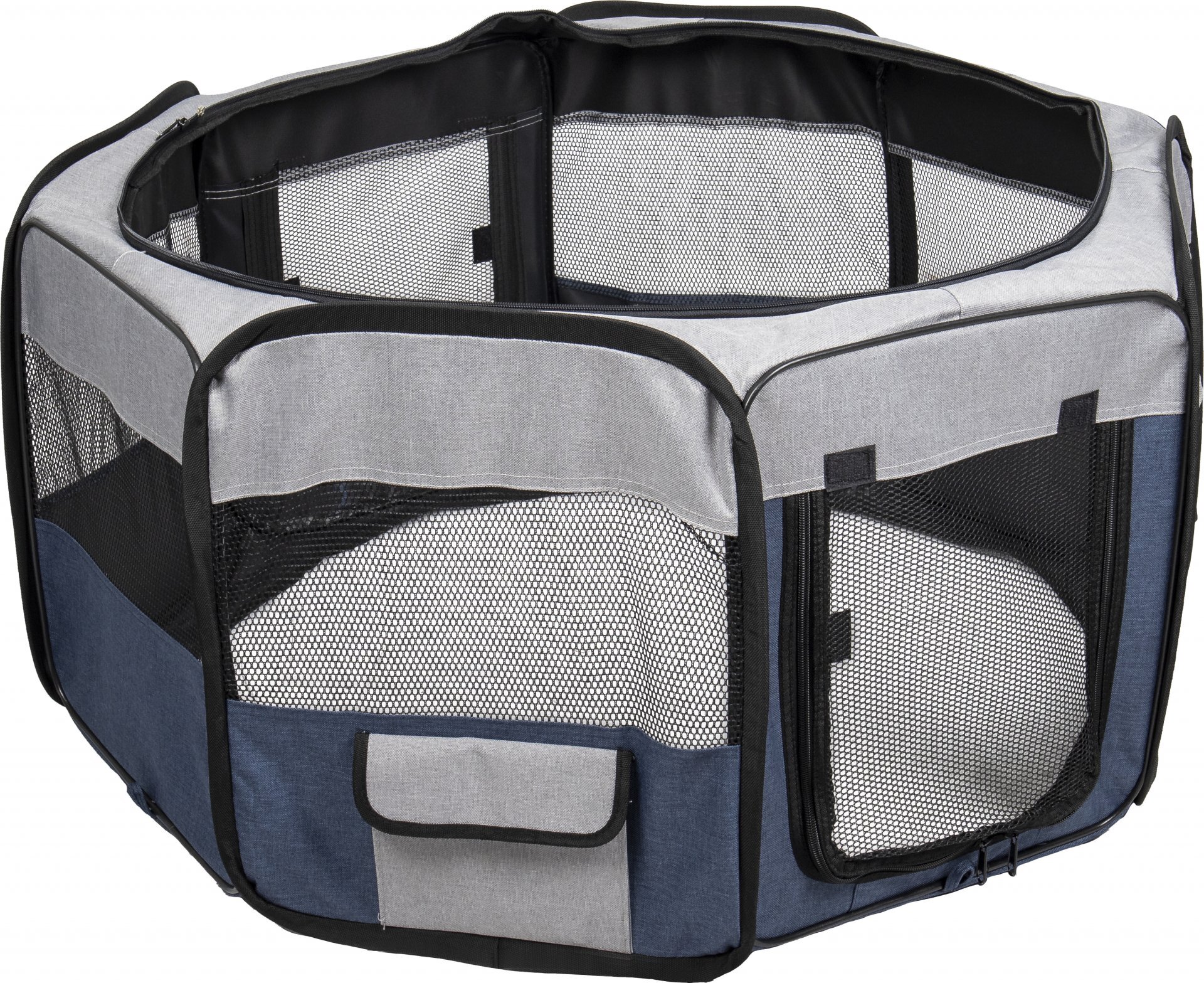 Cestovní ohrádka pro psy je praktická a lehká. Jednoduše se složí do velikosti tašky, a proto si ji můžete vzít všude s sebou. V přední a zadní části je vstupní otvor na zip. Vrchní síťka je odnímatelná. Praktická kapsa na boční straně Vám umožní uschovat potřebné věci. Vhodné pro menší plemena nebo štěňata. Rozměr: 84x84x43 cm