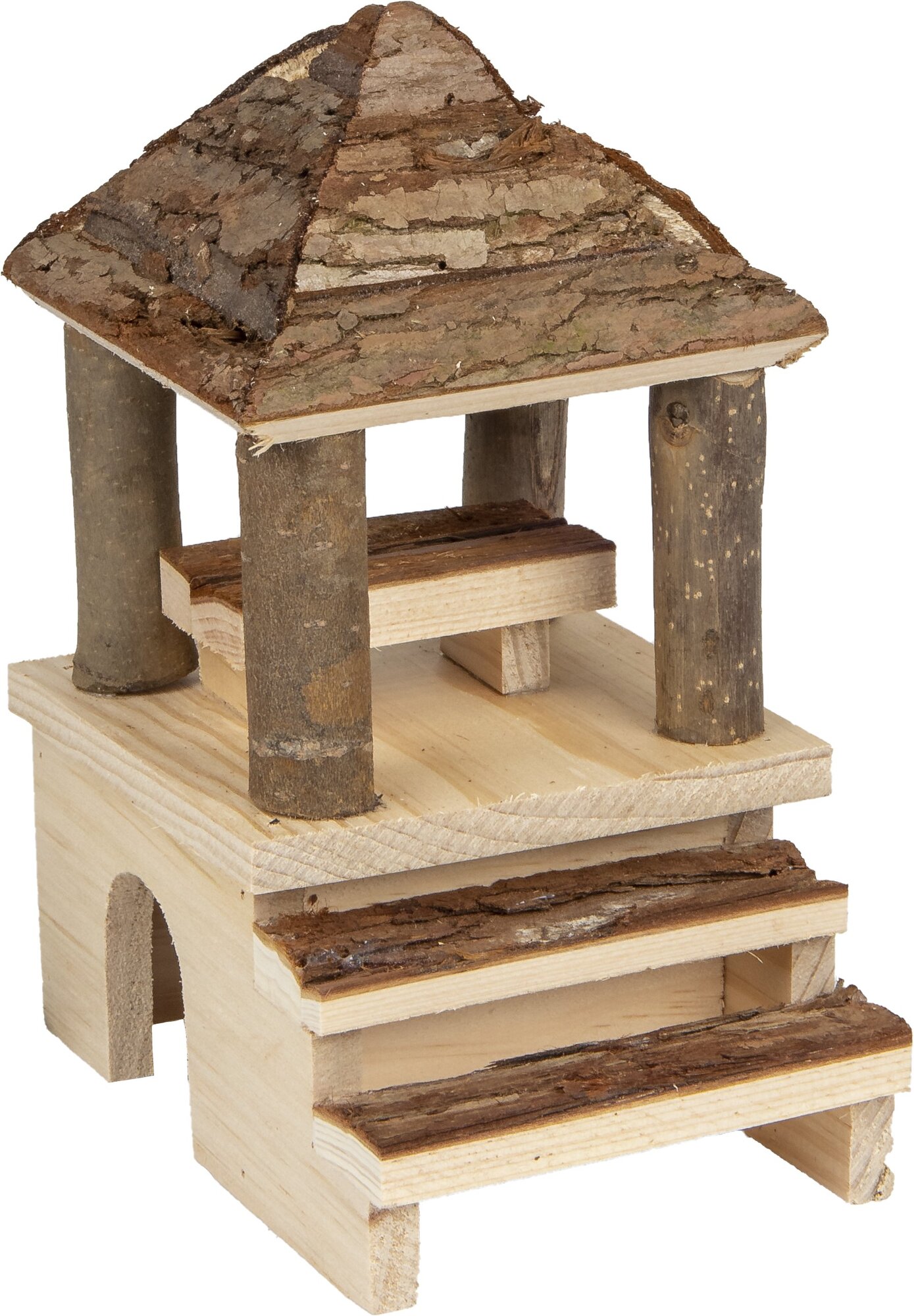 Dřevěný domeček pro hlodavce PADY je vyroben z přírodních materiálů. Krásná prolézačka ve tvaru altánku se schůdky a lavičkou poskytne Vašemu mazlíčkovi spoustu zábavy. Podporuje přirozené chování jako je kousání, lezení i skrývání. Rozměr: 16x12x21 cm. číst celé