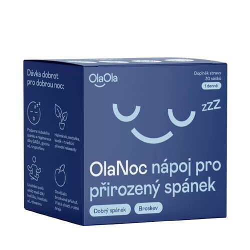 OlaNoc je večerní nápoj v sáčku, který pomáhá zklidnit tělo i mysl před spánkem a přispívá k dlouhodobé vitalitě. Kombinuje aminokyseliny, hořčík z přírodního zdroje, bylinky a inositol. Společně podporují uvolnění, kvalitní spánek a regeneraci organismu.