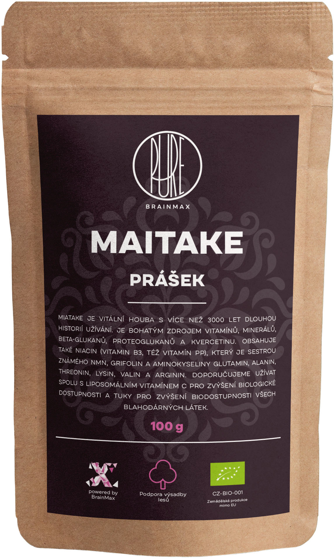 BrainMax Pure Maitake prášek, BIO 100g