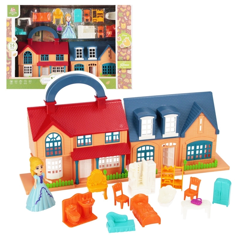 Domeček pro panenky s princeznou, má rozměry 37X25X8 cm. Domek obsahuje lakovka, domeček, skříň, stůl, židle, kuchyňský nábytek, koupelnový nábytek a princeznu. Cena je za 1 kus. Vhodné pro děti 3+. číst celé