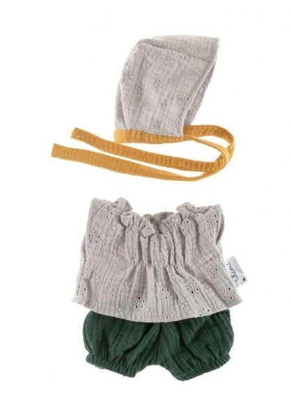 Oblečky pro panenky 32 cm, tunika, kraťasky a čepička, zelená/šedá