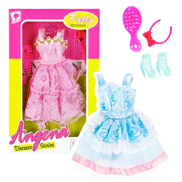 Obsah soupravy: šaty, boty, hřeben nebo kartáč, čelenka nebo sponka do vlasů. Souprava je vyrobena z materiálu a plastu.