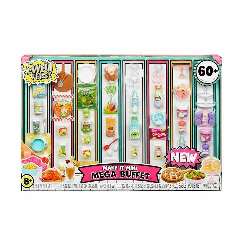 MGA Miniverse Make It Mini Mega Buffet nabízí zábavný a kreativní zážitek, který rozvíjí fantazii a motorické dovednosti. Sada je navržena tak, aby umožnila snadné sestavení a variabilitu, což z ní činí ideální produkt pro děti i dospělé, kteří rádi tvoří. Vytvořte si svůj vlastní stylizovaný bufet podle svých představ a užijte si hodin zábavy při kompletaci a dekorování.