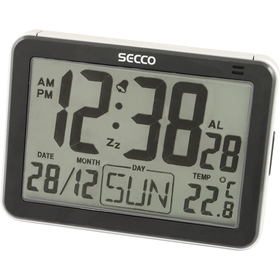 BudíkNapájení z bateriePouzdro ve tvaru obdelníkuPlastové pouzdroČERNÁ barva pouzdraDigitální ciferníkCiferník s arabskými číslyDatumOsvětlení displejeBudíkTeploměr