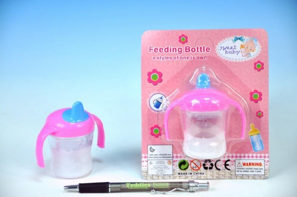 Kojenecká lahvička s mlékem pro panenku plast 5cm na kartě