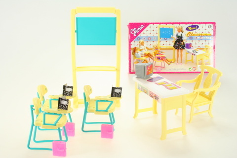 Sada Glorie Škola obsahuje vše, co malý školák potřebuje: 3 židle s podpěrkami o rozměrech 7,5 x 7 x 11,5 cm pro pohodlné sezení, velkou tabuli 29 x 13 cm pro kreslení a psaní, ale i 3 tašky, papírové sešity a testy, které podporují kreativitu a zábavnou formou pomáhají dětem osvojit si základní znalosti. V setu nechybí ani počítač s klávesnicí a učitelský stůl s židlí o rozměrech 15,3 x 7 x 11 cm, které přidávají dalšímu hraní realistický rozměr a podporují rozvoj fantazie. Panenky nejsou součástí balení, díky čemuž si můžete přizpůsobit sadu podle svých představ a rozšířit ji o oblíbené postavičky vašich dětí.