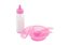 Sada pro panenky plastová, lahvička, miska s příborem, na kartě 19x22x4cm