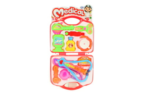 Plastová doktorka v kufříku o rozměru cca 19 x 22 cm. Sada obsahuje vše potřebné pro malého doktora - stetoskop pískací, injekce, kladívko, brýle a spoustu dalšího náčiní. Rozměry balení cca 45 x 22 x 3 cm. Věk 3+ číst celé