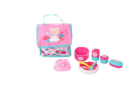 Taštička s doplňky pro panenky. Balení obsahuje taštičku, plastový bryndáček, nočník, talířek a další doplňky. Rozměry balení cca 27 x 30 x 5 cm. Věk 3+ číst celé
