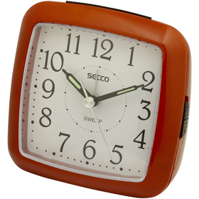 BudíkNapájení z bateriePouzdro ve tvaru čtvercePlastové pouzdroČervená barva pouzdraRučičkový ciferníkBílá barva ciferníkuCiferník s arabskými číslyOsvětlení displejeBudík