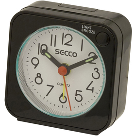 BudíkNapájení z bateriePouzdro ve tvaru čtvercePlastové pouzdroČERNÁ barva pouzdraRučičkový ciferníkBílá barva ciferníkuCiferník s arabskými číslyOsvětlení displejeBudík číst celé