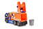 Śmieciarka ze światłem i dźwiękiem, na licencji marki Volvo. Kosz na śmieci ładowany od tyłu, ruchoma komora naczepy. Długość: 56 cm, 3l+