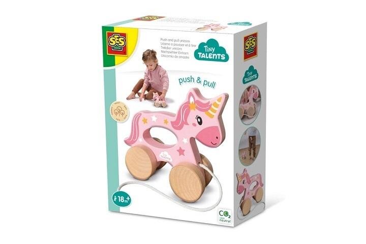 Piękny różowy jednorożec do ciągnięcia, wykonany z drewna i wyposażony w solidne koła do zabawy. Pchnij jednorożca, wykorzystując otwór jako uchwyt lub pociągnij za sznurek, aby jednorożec jechał z tyłu. Nowoczesny i uroczy wzór jednorożca, rozmiar dostosowany do dziecięcych dłoni. číst celé