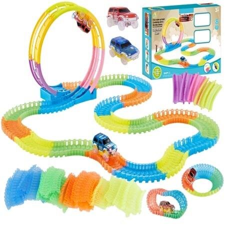 Zestaw toru wyścigowego to kompleksowa i wszechstronna zabawka, która przenosi dzieci w fascynujący świat motoryzacji i szybkich wyścigów. Zestaw składa się z aż 180 elementów, co oferuje niezliczone możliwości tworzenia unikalnych tras wyścigowych, które mogą być dostosowane do preferencji i wyobraźni każdego malucha.