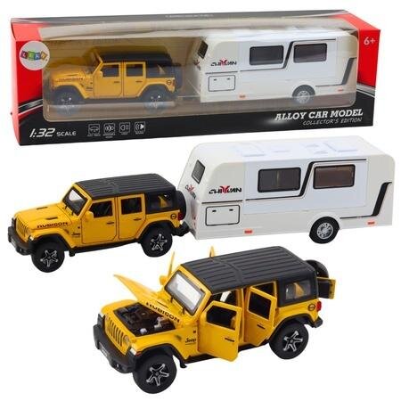 AUTO TERENOWE Z KAMPEREM ŻÓŁTE 1:32 Metalowy model samochodu terenowego z przyczepą kempingową to doskonała propozycja dla wszystkich miłośników motoryzacji, podróży i realistycznych miniatur pojazdów. Dzięki solidnej konstrukcji z metalu i plastikowych elementów, zestaw zachwyca dbałością o szczegóły, co czyni go zarówno świetną zabawką, jak i doskonałym modelem kolekcjonerskim. Model został wyposażony w efekty świetlne i dźwiękowe, które nadają mu realistyczny charakter, zwiększając atrakcyjność zabawy. Napęd typu pull-back pozwala na dynamiczną jazdę - wystarczy pociągnąć pojazd do tyłu i puścić, by samochód ruszył do przodu. Dodatkowo otwierane drzwi dodają interaktywności, umożliwiając dziecku bliższe poznanie wnętrza pojazdu i jeszcze bardziej angażując w zabawę. Zestaw doskonale odwzorowuje detale prawdziwego auta terenowego oraz nowoczesnej przyczepy kempingowej, co sprawia, że świetnie sprawdzi się zarówno jako zabawka dla dzieci, jak i element kolekcji dla dorosłych miłośników modeli samochodowych. Skala 1:32 zapewnia odpowiednie proporcje, dzięki czemu pojazd wygląda niezwykle realistycznie. To świetny pomysł na prezent dla pasjonatów motoryzacji, podróży oraz off-roadu. Doskonale sprawdzi się zarówno do zabawy, jak i jako ozdoba na półce. Dzięki wysokiej jakości wykonania i trwałym materiałom, model będzie cieszyć przez długi czas! SPECYFIKACJA: Materiał: Metal z plastikowymi elementami Kolor: Żółty samochód terenowy, biała przyczepa kempingowa Skala: 1:32 Funkcje: Napęd pull-back, efekty świetlne i dźwiękowe, otwierane drzwi Zasilanie: Baterie 3x AG13 (w zestawie) Wymiary zestawu: 35 cm x 8 cm x 6,5 cm Wymiary opakowania: 39,5 cm x 11 cm x 10,5 cm ZAWARTOŚĆ ZESTAWU: Metalowy model samochodu terenowego z napędem pull-back Przyczepa kempingowa wykonana z metalu i plastiku Oryginalne opakowanie
