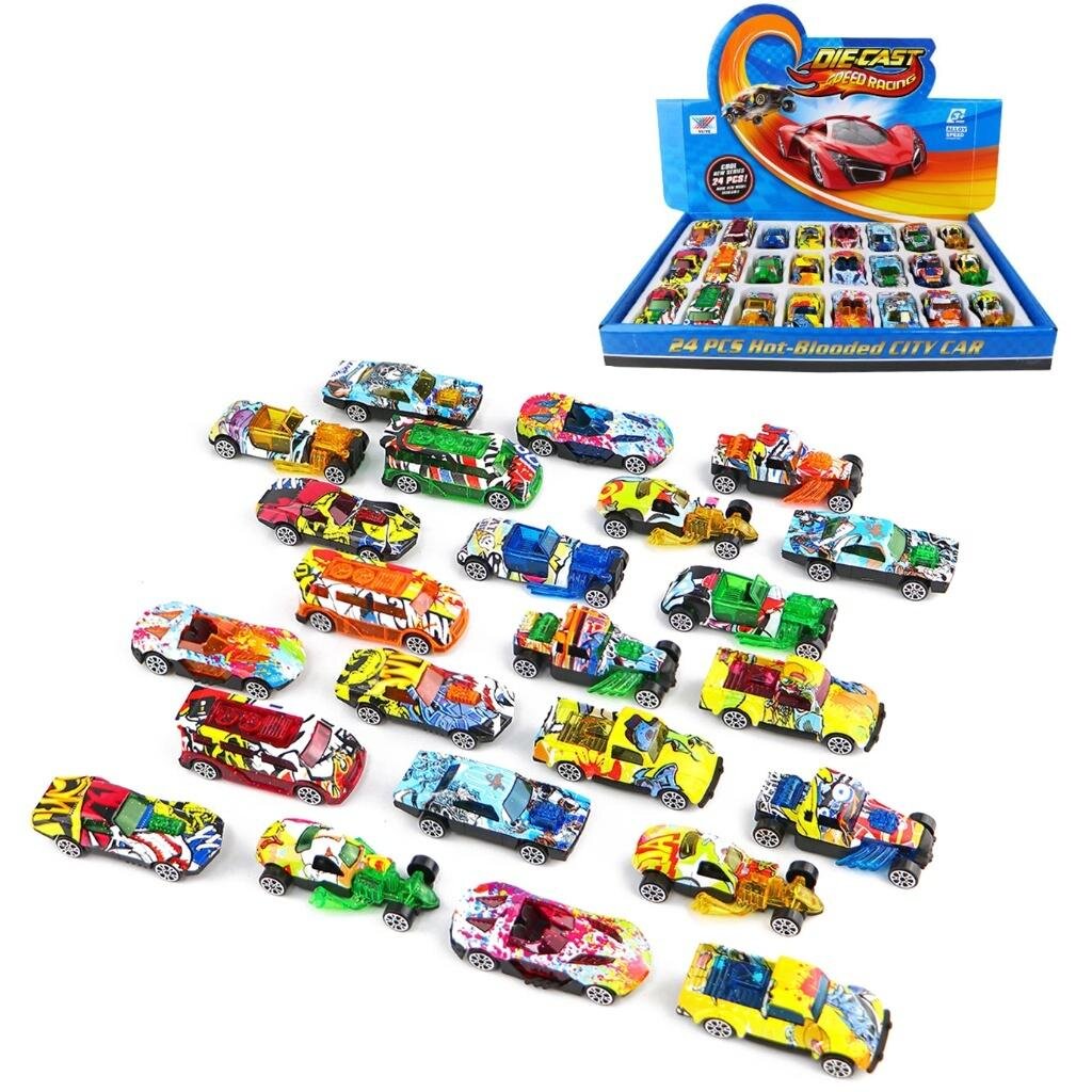 Metalowe Samochodziki Grafiti Die-Cast - Prawdziwa Gratka dla Kolekcjonerów i Małych Fanów Motoryzacji! Przedstawiamy ekscytujący zestaw 24 metalowych samochodzików die-cast do wyboru , które zachwycą zarówno małych miłośników motoryzacji, jak i doświadczonych kolekcjonerów. Każdy samochodzik charakteryzuje się unikalnym designem i precyzyjnym wykonaniem, co czyni je nie tylko świetną zabawką, ale również cennym elementem kolekcji. Cechy produktu: Bogaty zestaw: Aż 24 różnorodne metalowe samochodziki w jednym opakowaniu! Każdy pojazd ma swój indywidualny styl i kolorystykę, zapewniając długie godziny fascynującej zabawy. Wytrzymała konstrukcja: Wykonane z wysokiej jakości metalu (die-cast) z elementami plastikowymi, samochodziki są trwałe i odporne na intensywną zabawę. Realistyczne detale: Mimo niewielkich rozmiarów, każdy model charakteryzuje się dbałością o detale, co sprawia, że wyglądają jak prawdziwe pojazdy. Różnorodność modeli: W zestawie znajdują się różne typy samochodów, od sportowych aut po pojazdy miejskie, co urozmaica zabawę i pozwala na tworzenie własnych scenariuszy wyścigowych. Idealne do zabawy i kolekcjonowania: Samochodziki doskonale sprawdzą się podczas kreatywnej zabawy na dywanie, budowania torów wyścigowych, a także jako wartościowy element kolekcji dla starszych fanów motoryzacji. Atrakcyjne opakowanie: Zestaw zapakowany jest w estetyczny display box, który ułatwia prezentację i przechowywanie samochodzików. Rozwój wyobraźni: Zabawa samochodzikami pobudza wyobraźnię, kreatywność i zdolności manualne dzieci. Wielkość : 7cm Ten imponujący zestaw metalowych samochodzików to doskonały pomysł na prezent dla każdego dziecka, które marzy o własnej kolekcji aut. Zapewnij swojemu małemu kierowcy niezapomniane chwile pełne motoryzacyjnych emocji!