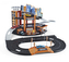Garaż 2-poziomowy, dystrybutor paliwa z pompką, ręczna winda dla samochodów, lądowisko dla helikoptera, elementy do wycięcia z kartonu, tor wyścigowy. W zestawie 1 metalowy pojazd w skali 1:64, 3l+