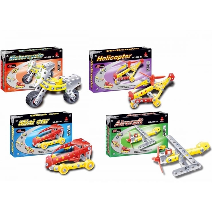 Kovová mini skládačka. Možnost výběru ze čtyř druhů a to letadlo, vrtulník, auto nebo motorka. Nevhodné pro děti do 3 let. číst celé