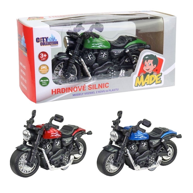 Motorka kovová, zpětný chod, 10,5 cm.Hračka je určena pro děti 3+.Rozměr hračky je 10.5 x 5.6 x 6.8 cm.Materiál hračky je kov.Balení hračky je box.Produkt je určený pro kluky.Baterie nejsou součástí balení. číst celé