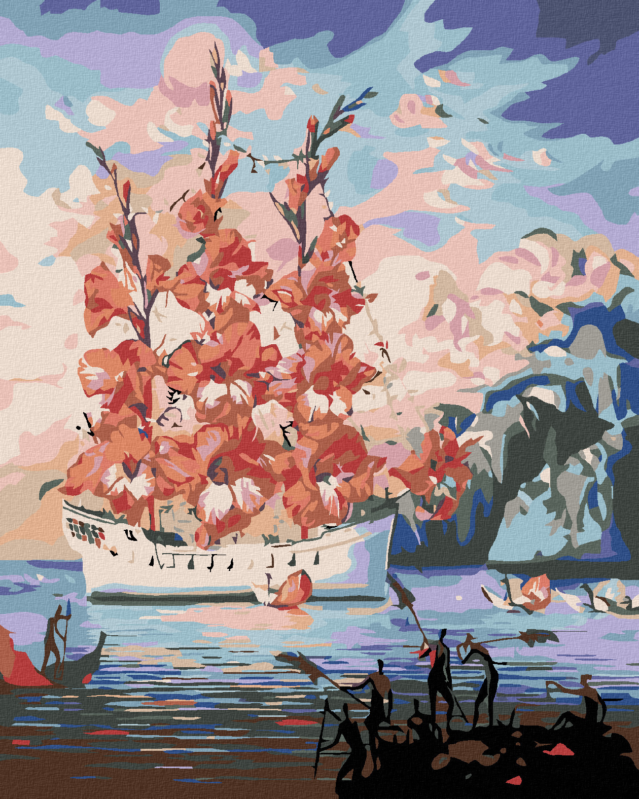 Malování podle čísel - KVĚTINOVÁ LOĎ - 40x50 cm, bez rámu a bez vypnutí plátna
